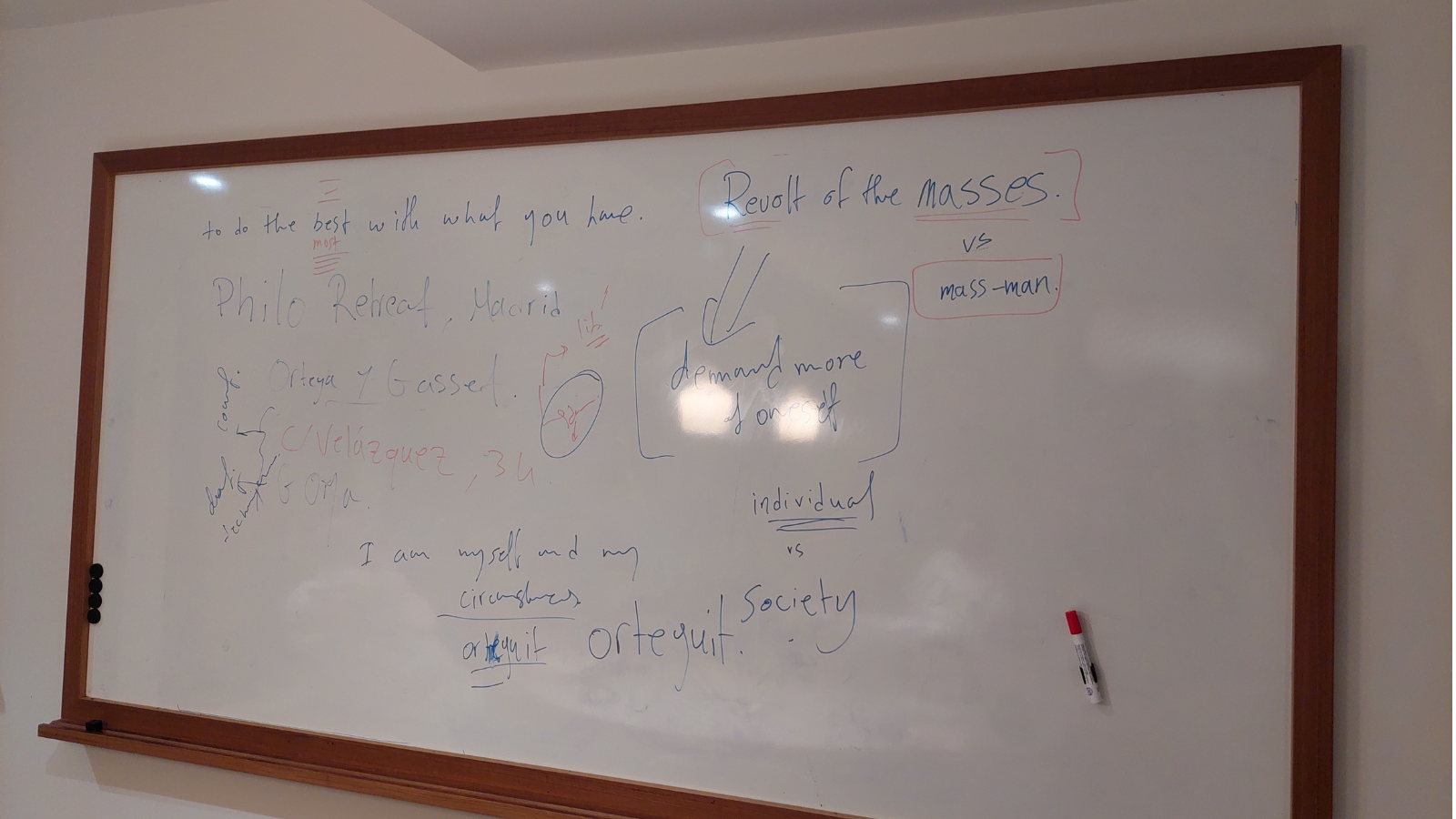 We also held a workshop where we discussed Ortega’s philosophy, focusing mainly on two of his books: The Revolt of the Masses and What is Philosophy?